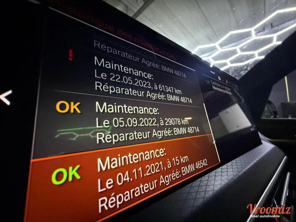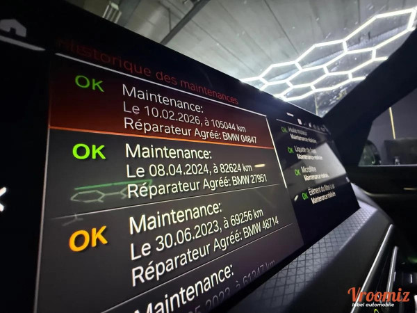 Accoudoir central, Allumage automatique des feux, Fermeture centralisée, GPS, Ordinateur de bord, Rétroviseurs électriques, Rétroviseurs rabattables, Toit ouvrant électrique en verre, Volant multifonctions, ABS, Airbags frontaux, Airbags lateraux, Anti-patinage, ESP, Frein parking automatique, Radar avant de détection d'obstacles, Radar arrière de détection d'obstable, Banquette 1/3 - 2/3, Barres de toit, Détecteur de pluie, GPS tactile, Radio, Contrôle de pression des pneus, Régulateur de vitesse, Prises AUX / USB*, Caméra de recul, Téléphone bluetooth*, Start and stop*, Aide au démarrage en pente, jantes alu*, 4 vitres électriques*, boite automatique*, Limiteur de vitesse, Bluetooth, Climatisation automatique, Carte grise possible sur place*, Historique du véhicule*, Feux diurne a LED*, Phares à LED, Climatisation multi zone, GPS couleur, Sièges sport, Vitres surteintées, Volant sport, Pack sport*, Commandes vocales, Coffre electrique*, Boite 8 rapports*, Palettes au volant*, Demarrage sans clef*, Ecran multifonction*, Système d'aide au freinage d'urgence, Verrouillage automatique des portes en roulant, Verrouillage à distance*, Ouverture coffre à distance*, 4 roues motrices*, hayon électrique*, lunette arrière dégivrante*, configuration 5PL*, fermeture électrique automatique*, Radar arrière de détection d'obstacles, Commandes au volant, Démarreur électrique*, Volant cuir, écran tactile*, Keyless Go*, Pack cuir, Système d'aide au stationnement, Warning*, Feux de détresse*, Prise allume cigare*, Accoudoir central arrière*, Radar d'aide au stationnement*, baguettes de seuil de porte alu*, banquette rabattable*, échappement sport*, Fixation ISOFIX, Entretien BMW, Deux Clés, CarPlay, Park assist, sélecteur mode de conduite, Virtual Cockpit,