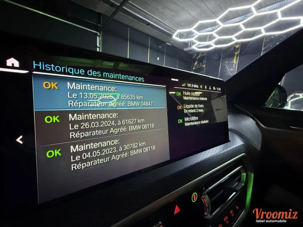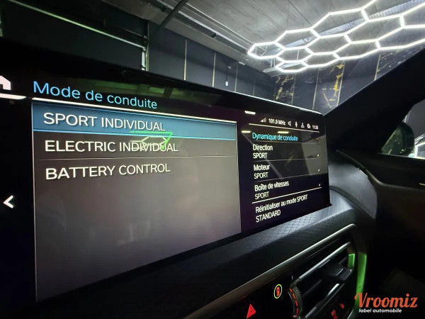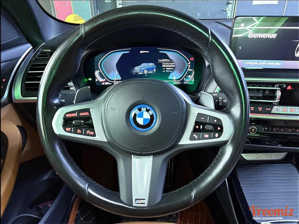 Accoudoir central, Allumage automatique des feux, Fermeture centralisée, GPS, Ordinateur de bord, Rétroviseurs électriques, Rétroviseurs rabattables, Volant multifonctions, Volant réglable, ABS, Airbags frontaux, Airbags lateraux, Anti-patinage, ESP, Frein parking automatique, Non fumeur, Radar avant de détection d'obstacles, Radar arrière de détection d'obstable, Banquette 1/3 - 2/3, Détecteur de pluie, GPS tactile, Radio, Contrôle de pression des pneus, Régulateur de vitesse, Prises AUX / USB*, Start and stop*, Aide au démarrage en pente, jantes alu*, 4 vitres électriques*, boite automatique*, Limiteur de vitesse, Bluetooth, Climatisation automatique, Historique du véhicule*, Feux diurne a LED*, Phares à LED, Climatisation multi zone, GPS couleur, Vitres surteintées, Alarme, Commandes vocales, Coffre electrique*, Palettes au volant*, Demarrage sans clef*, Ecran multifonction*, Système d'aide au freinage d'urgence, Verrouillage automatique des portes en roulant, 4 roues motrices*, lunette arrière dégivrante*, ciel de pavillon noir*, configuration 5PL*, Commandes au volant, Sièges chauffants, Volant cuir, Toit ouvrant panoramique, écran tactile*, Fixations ISOFIX, Warning*, Feux de détresse*, Prise allume cigare*, Accoudoir central arrière*, Kit de dépannage pneumatique*, Radar d'aide au stationnement*, Sièges réglables en hauteur, sorties d'échappement chromées*, système de récupération d'énergie au freinage*, Sièges électrique à mémoires , Caméra de recul 360°, Garantie BMW 2029, Park Assist, Mode de conduite : SPORT - ELECTRIC - BATTERY CONTROL, Apple CarPlay , Android Auto, Jantes 19" M-Sport Bi-ton,